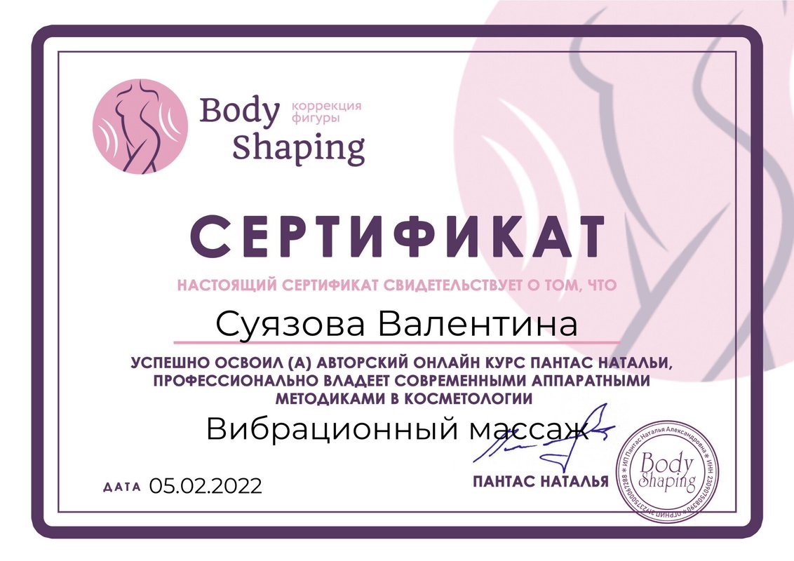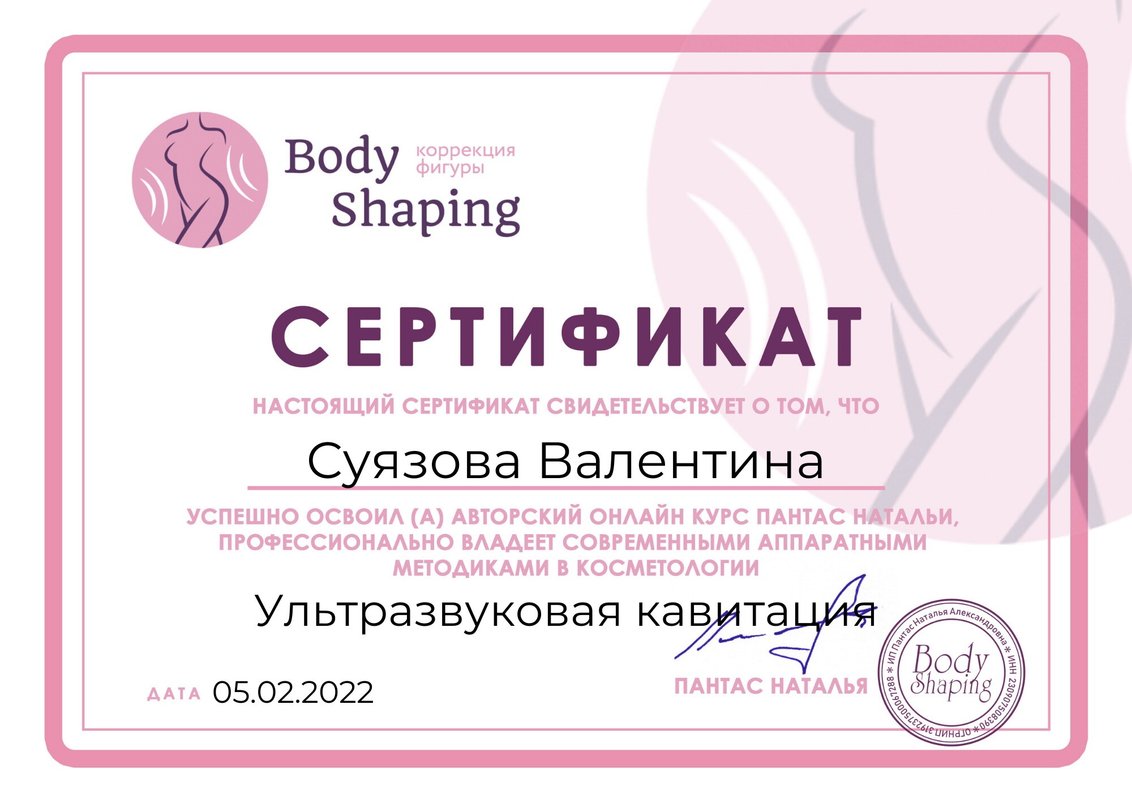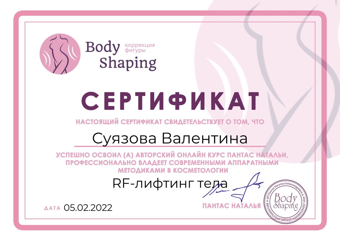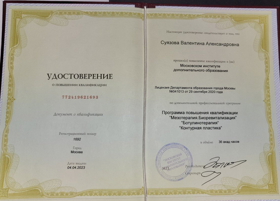 Также к услугам наших клиентов аппаратная косметология, пилинг, миостимуляция, массаж тела при помощи вакуума, контурная пластика, биоревитализация, мезотерапия, ботокс, гиалуроновая кислота.